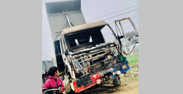 करेन्ट लागेर टिपरमा आगलागी, चालक अवस्था गम्भीर