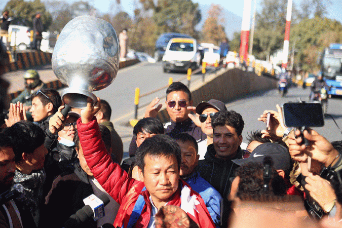 धरानलाई खानेपानी माग्दै काठमाडौं आइपुगे मेयर हर्क साम्पाङ